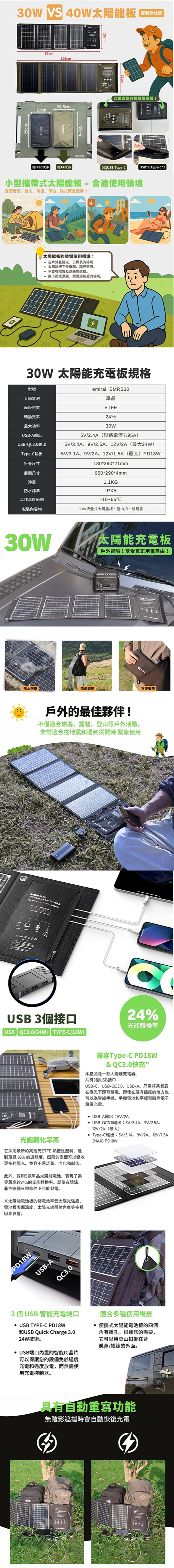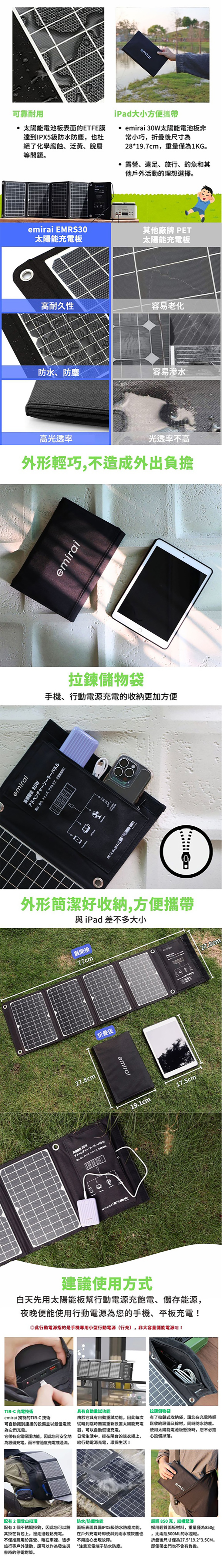 .內容物:30W可折疊太陽能電池板、登山鉤、說明書