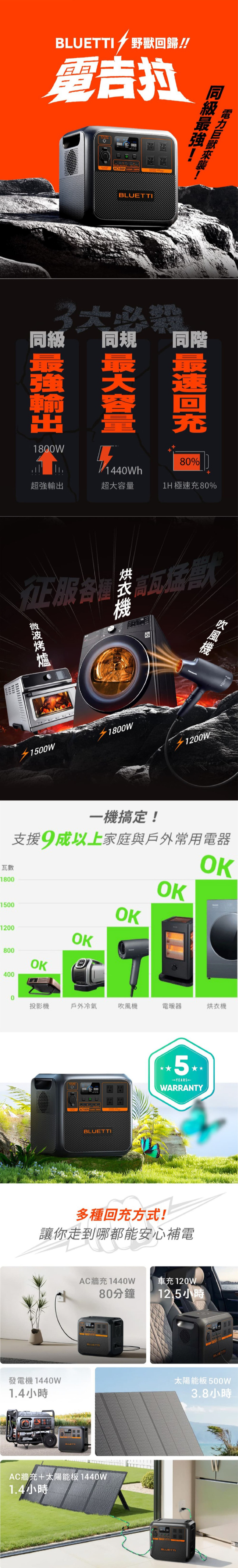 ·AC+太陽能輸入:最大1440W(10℃~30℃)