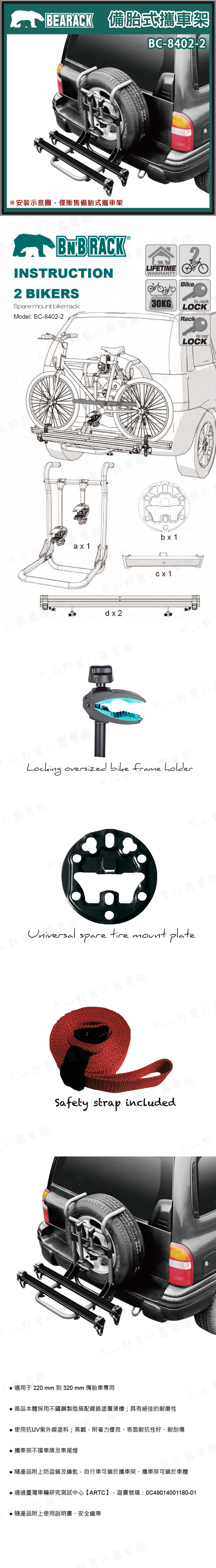 【大山野營】 BEARACK 熊牌 BC-8402-2 鋁合金滑槽式備胎攜車架 2台 腳踏車架 自行車架 單車架
