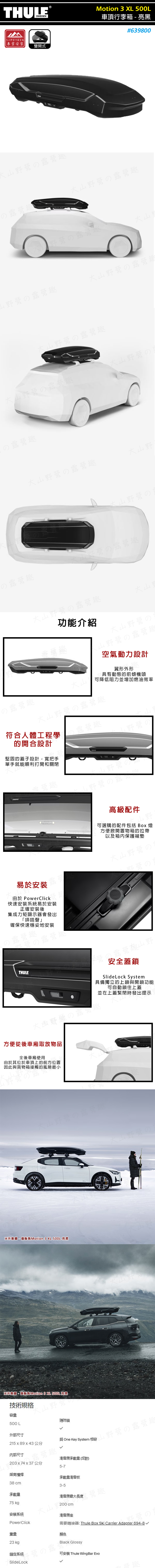 【活動88折】THULE 都樂 639800 Motion 3 XL 車頂行李箱 500L 亮黑 雙開 車頂箱 置物箱 旅行箱 漢堡
