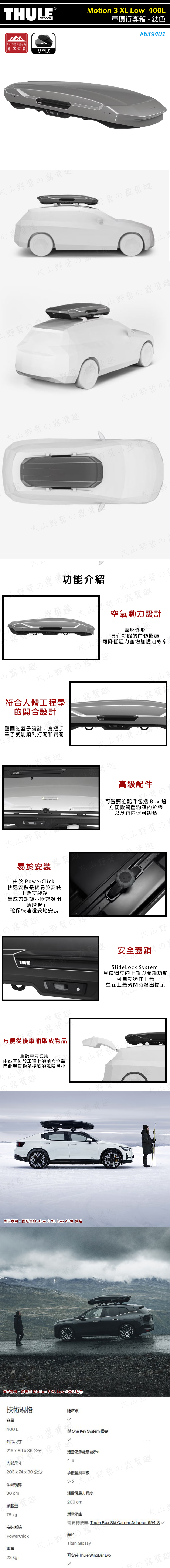 【活動88折】THULE 都樂 639401 Motion 3 XL Low 車頂行李箱 400L 鈦金屬亮漆 雙開 車頂箱 置物箱 旅行箱 漢堡