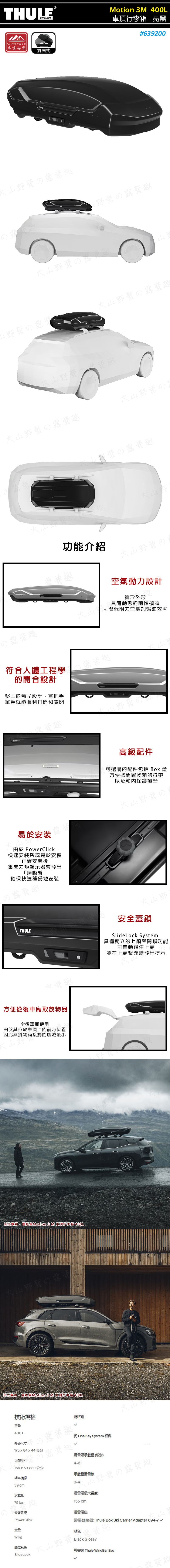 【活動88折】THULE 都樂 639200 Motion 3 M 車頂行李箱 400L 亮黑 雙開 車頂箱 置物箱 旅行箱 漢堡