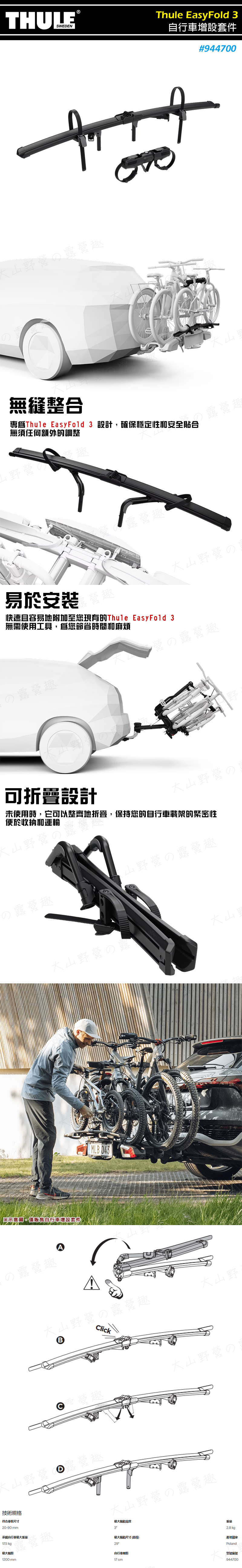 【大山野營】THULE 都樂 944700 Thule EasyFold 3 自行車增設套件