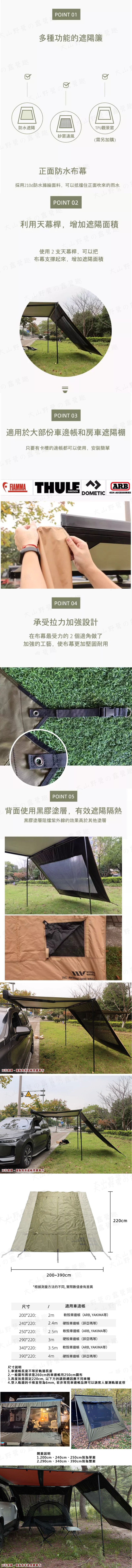 【大山野營】韓國 WINDSWAVES CP00024 CP00028 車邊帳黑膠圍布 340 遮陽簾砂網 車宿車泊 露營 FIAMMA ARB YAKIMA A180