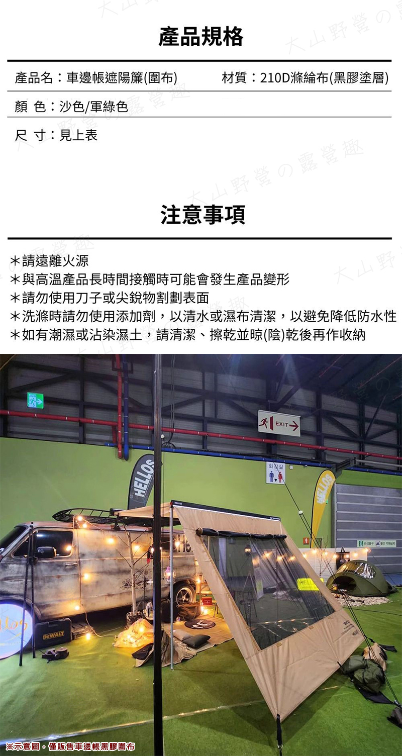 【大山野營】韓國 WINDSWAVES CP00031 CP00032 車邊帳黑膠圍布 390 遮陽簾砂網 車宿車泊 露營 FIAMMA ARB YAKIMA A180