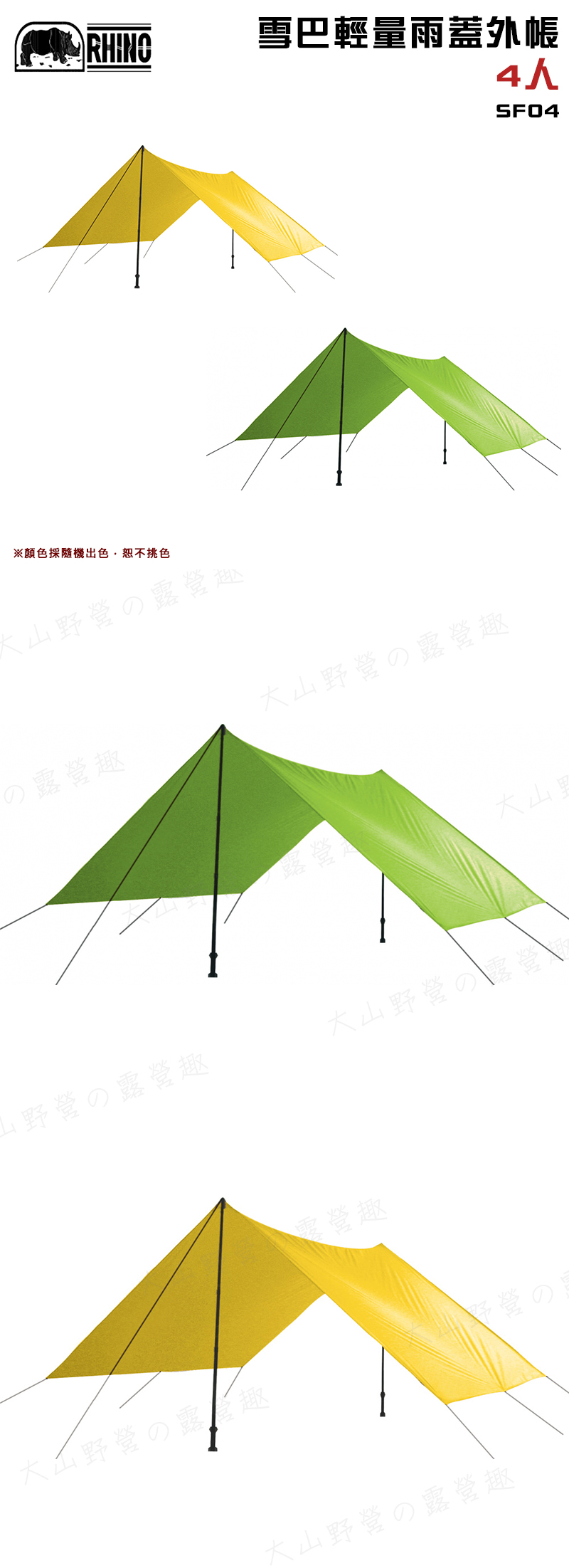 【大山野營】犀牛 RHINO SF04 雪巴輕量雨蓋外帳 4-6人 天幕 輕量布 炊事帳 天幕帳 緊急避難帳 野營 露營