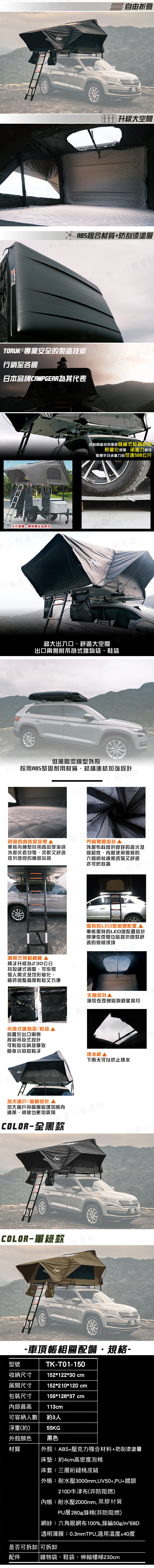 -內帳/280g滌棉(非防阻燃)、黑膠塗層、耐水壓2000mm