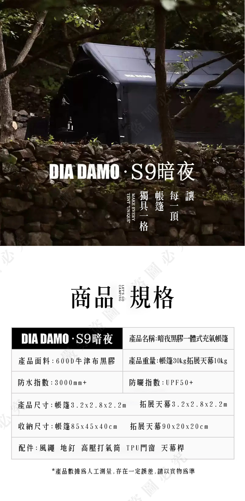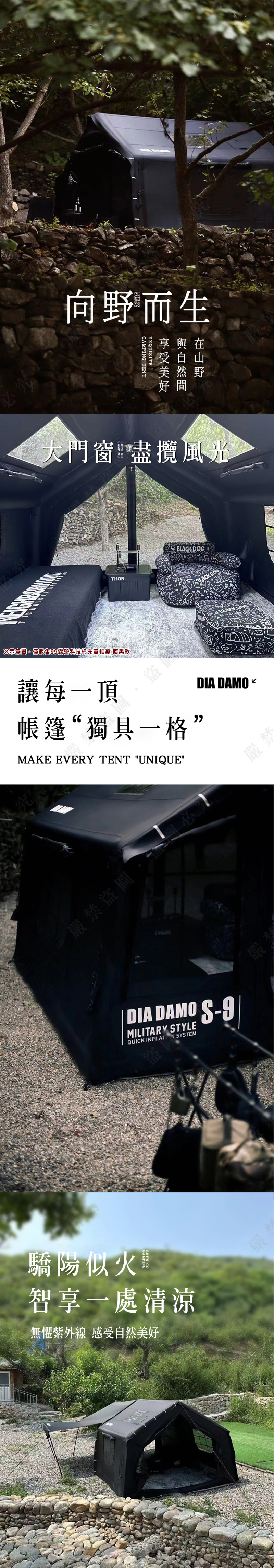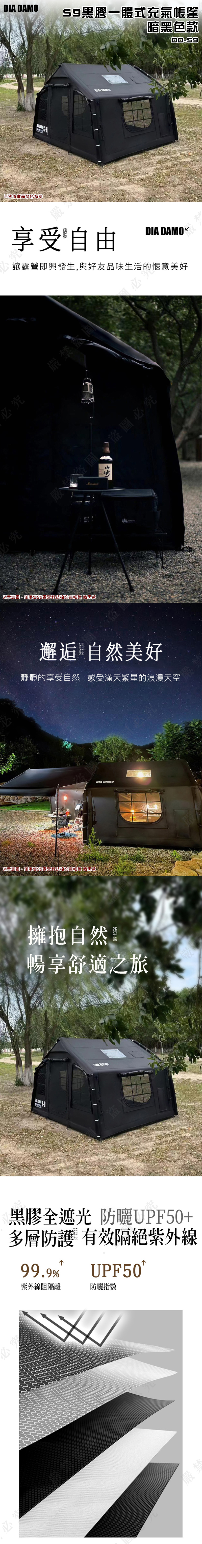 【預購】DIADAMO DD-S9 迪達蒙 S9黑膠一體式充氣帳篷 暗黑款 充氣帳 天幕 露營 野營