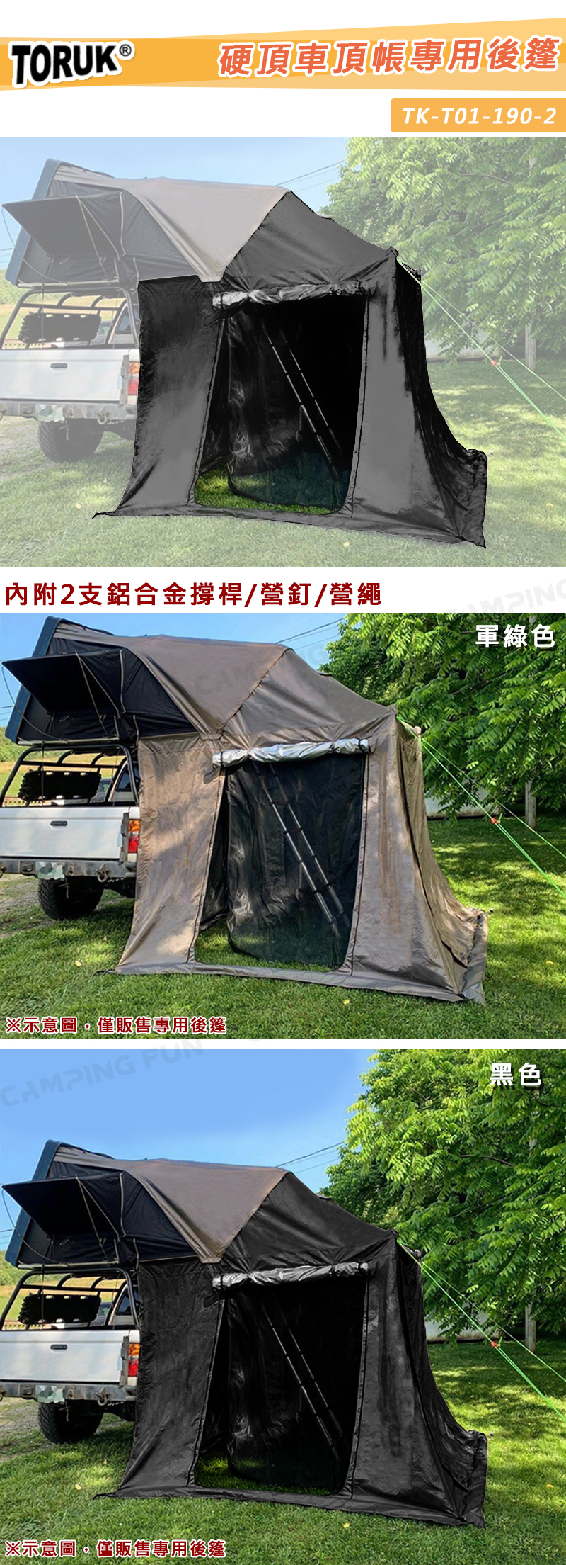 【7折特價】TORUK TK-T01-190-2 硬頂車頂帳專用後篷 客廳帳 炊事帳 遮雨棚 遮陽帳 露營帳篷 帳棚 露營 野營