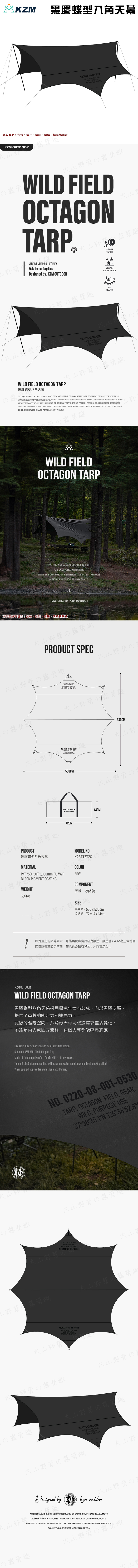 【大山野營】KAZMI KZM K231T3T20 黑膠蝶型八角天幕 天幕帳 遮光帳 防曬帳 露營 野營