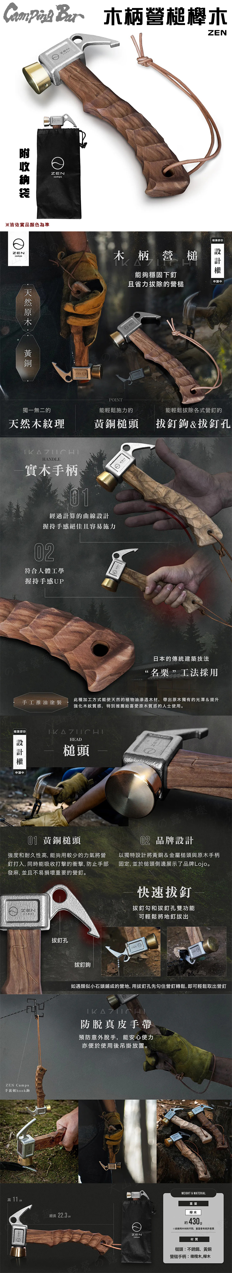 【大山野營】ZEN 木柄營槌櫸木(上油) 黃銅槌頭 營槌 拔釘槌 槌子 露營 野營