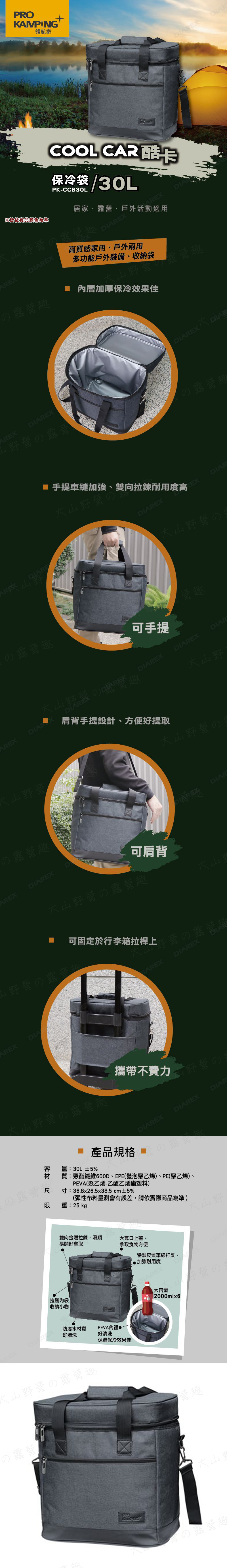 【大山野營】ProKamping 領航家 PK-CCB30L 酷卡保冷袋cool car 30L 保冰袋 保溫包 露營 野營