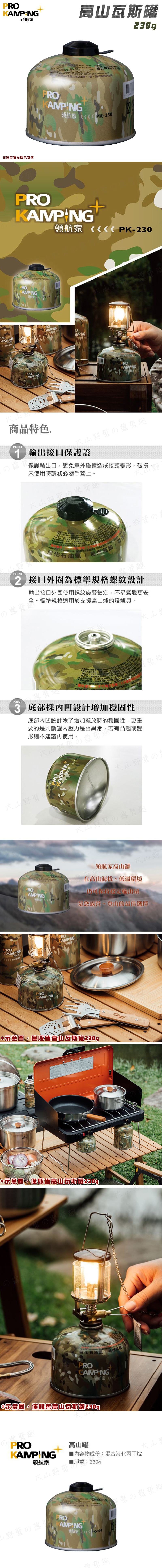 【大山野營】ProKamping PK-230 領航家 高山瓦斯罐230g 瓦斯瓶 登山 野炊 露營 野營