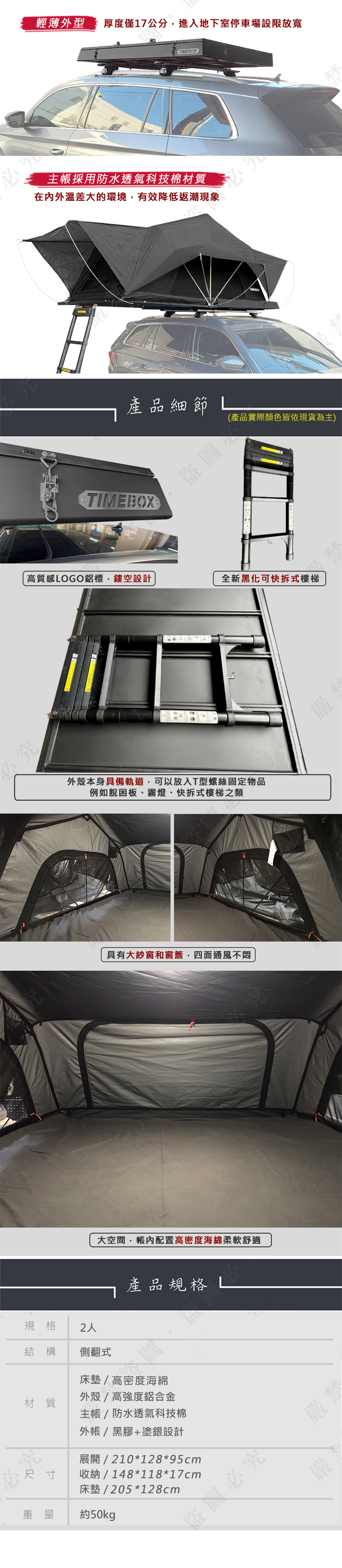 【大山野營】台灣 TIMEBOX XCR-150 2.0超薄款鋁合金車頂帳 黑化版 側翻帳 2人帳 雙人帳 獨家專利設計 帳棚 露營帳篷